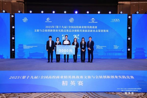 新闻中心讯(记者 万风)近日,2025年(第十九届)全国高校商业精英挑战赛文旅与会展创新创业实践竞赛全国总决赛精英赛在浙江永康圆满落幕。beat365官方网站管理学院学生舒潇、饶志轩、熊欣芮、卢慧洁、李雯馨组成的团队(指导老师:殷娟、秦荣杰)凭借出色的项目创意与现场表现,荣获旅游新业态项目策划赛道全国总决赛精英赛冠军,并成功获得2026年(新加坡)国际商务会展策划大赛参赛资格。
