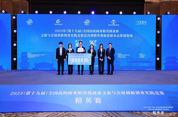 全国高校商业精英挑战赛文旅与会展创新创业实践竞赛是我国高等教育领域具有广泛影响力的重要赛事,被列入中国高等教育学会《全国普通高校大学生竞赛排行榜》。本届精英赛汇聚了全国各高校的优秀团队,强手如云,竞争尤为激烈。其中,旅游新业态项目策划赛道的100支参赛队伍,都是从全国总决赛一等奖获奖团队中遴选而出的。