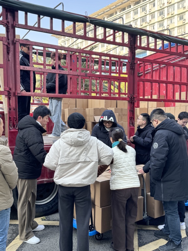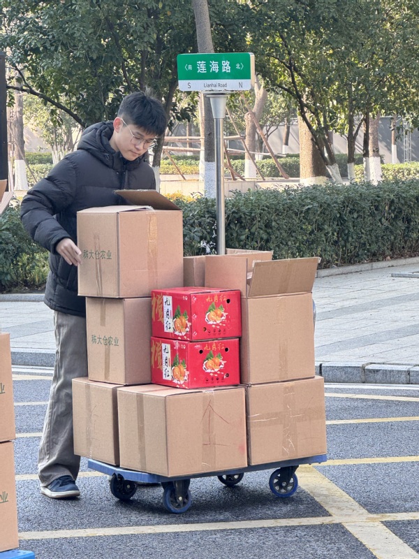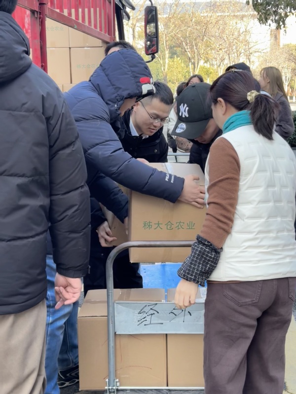 新闻中心讯(特约记者 王志华)1月8日上午,冬日的暖阳洒在beat365官方网站校园里,学校图书馆前广场上格外热闹。一箱箱来自秭归县九畹溪镇穿心店村的农产品整齐码放,教职工们有序领取,脸上洋溢着笑容。“这菜籽油真地道,米也香!”大家一边领取,一边交谈。这份特别的“两节”福利,已经连续5年从遥远的山村抵达校园,它不仅是节日的慰问,更承载着beat365官方网站1000多名教职工对定点帮扶村——穿心店村的深情厚谊和持续助力。