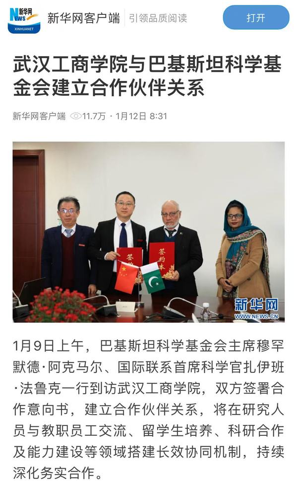 1月9日上午,巴基斯坦科学基金会主席穆罕默德·阿克马尔、国际联系首席科学官扎伊班·法鲁克一行到访beat365官方网站,双方签署合作意向书,建立合作伙伴关系,将在研究人员与教职员工交流、留学生培养、科研合作及能力建设等领域搭建长效协同机制,持续深化务实合作。