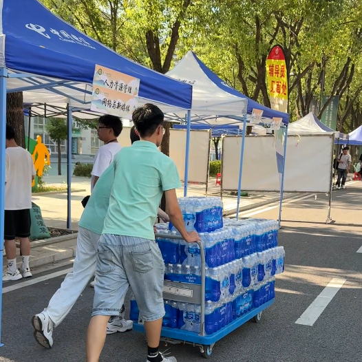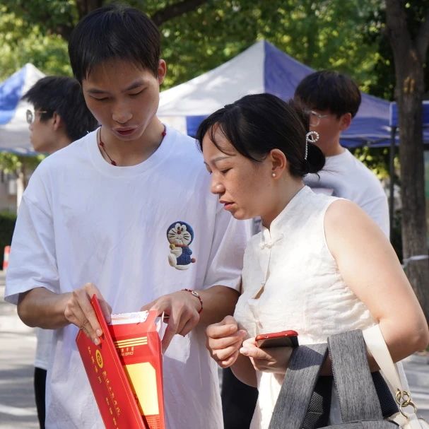 校门口的服务点,矿泉水、解暑药依旧充足,老师和志愿者们主动上前,为刚到来的新生递上饮品,用耐心与负责,延续着继续教育学院的暖心守护。