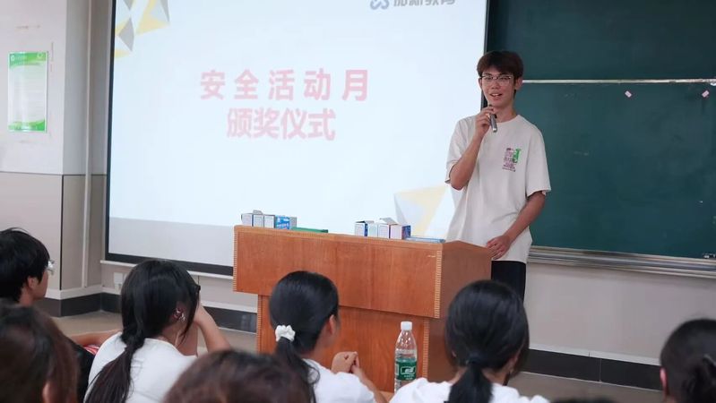 颁奖环节中,蔡辉部长依次为获奖班级颁发奖金,在获奖感言分享中,班长们纷纷表示,这份荣誉离不开全班同学的共同努力:“从班会学习到日常自查,大家主动参与安全管理,比如互相提醒规范停放电动车、检查宿舍用电安全,团结协作才换来这份认可。”