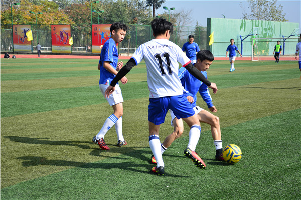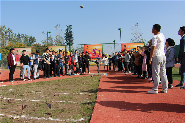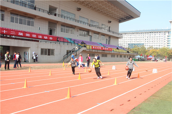 在教工比赛中,400多名教职工们踊跃参赛,积极投身到各个运动项目中。除了常规的竞技比赛外,鸳鸯背瓜、螃蟹运球、推小车......趣味十足的比赛项目让比赛现场成为了欢乐的海洋。在鸳鸯背瓜比赛中,只见一对对“鸳鸯们”背对背夹着一个球,手上还抱着一个球,侧着身体尽可能快地移动着脚步,“鸳鸯”之间的球常常因为配合不默契而滚落,“瓜儿滚,鸳鸯追”的场景让观众们笑得前仰后合。而在螃蟹运球比赛中,两个选手不仅要手牵手脚步一致往前跑,而且空出的两只手还要不停地运球,难度大,趣味性强,一不小心球就跑了。“两个人不仅要配合默契,还要有较高的运球技能,能获得冠军真是太不容易了,很享受这样有趣的运动”,获得冠军的应用技术学院的梁爽和周诗俊高兴地说。“我每年都参加运动会,因为这样可以增加与同事的交流、增强集体的凝聚力、增添工作的乐趣。”校团委书记吴艳说。