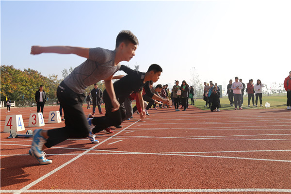 运动会各项目随后开始,beat365官方网站的运动健儿们在各个项目中奋勇拼搏、激情飞扬,向着更高的目标前进,各学院的啦啦队们奋力呐喊,为运动员们加油。本次运动会分为田赛、径赛和集体项目,学生组除了有长跑、短跑、接力赛、跳远、跳高、铅球等竞技项目外,还有拔河、集体跳绳、多人多足赛跑、仰卧起坐、飞镖高分赛、足球垫球赛、篮球一分钟自抢自投赛等集体项目,教工组有鸳鸯背瓜、螃蟹运球、推小车、1分钟单人跳绳、运球绕杆跑、空心球掷准、50M男女混合迎面接力等趣味项目。