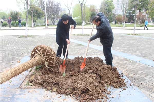 图为正在种树的老师们 摄影:焦艳玲
