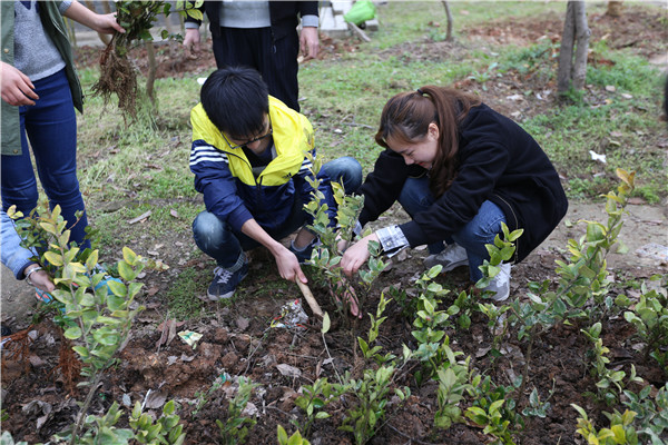 据该校团委书记吴艳介绍,此次活动是该校3月到6月举行的校庆系列庆祝活动之一,共在学校空地划分了20个种植片区,500余名师生共同种植2万株小灌木苗,110颗大树苗,很高兴看到留学生们的主动参与,为营造优美的校园环境出一份力。后期学校将制作树木标签,由环保协会配合进行挂牌,合理划分区域后,由各学院组织学生对树木认领养护,也会对树木生长、养护情况进行跟踪。