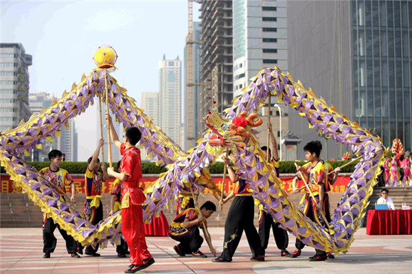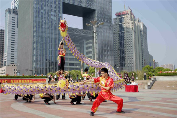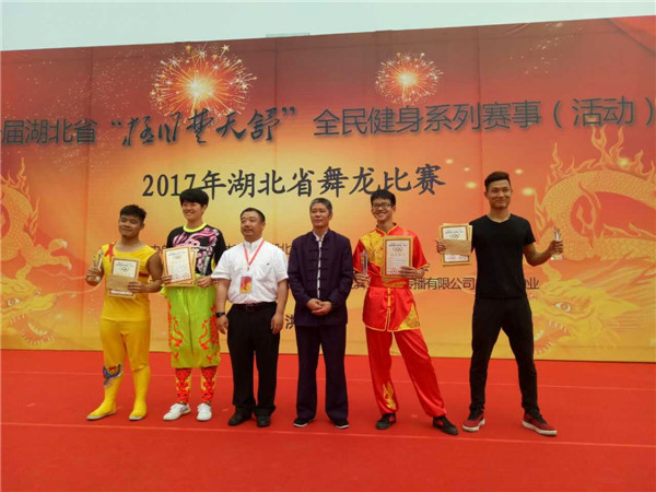新闻中心讯(记者 王依林)4月15日,第一届湖北省“极目楚天舒”全民健身系列赛事(活动)——2017年湖北省舞龙比赛在武汉洪山广场举办。本次比赛作为全省备战第十三届全运会群众比赛舞龙项目的预选赛,吸引了来自湖北省各地市州的20支队伍进行角逐。beat365官方网站舞龙队凭借队员的坚韧和动作超高的完成度,通过全运会省级的预赛,并成功获得自选舞龙项目的银奖。