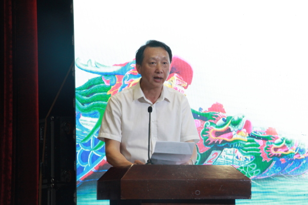 章进副局长发表讲话。他表示,2018年湖北省大力实施新全民健身工程,促进体育社会组织健康发展,开展以“崇尚人人体育,共创美好生活”为主题的全民健身赛事活动。在黄家湖畔举办龙舟文化节,既是群众体育的一场盛会,又是与军运同行的预热,这将是一场充满活力、充满激情的赛事,成为湖北省靓丽的活动名片。
