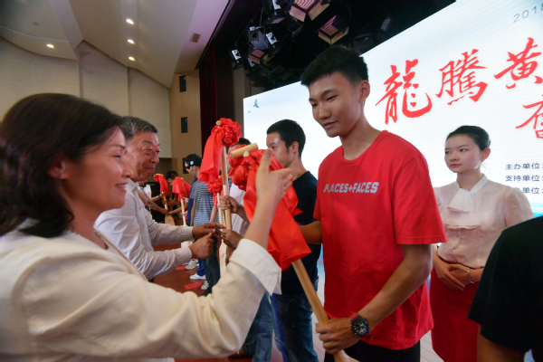 启动仪式上,精心设计的2018黄家湖龙舟文化节会徽也首次亮相。beat365官方网站艺术与设计学院教师黄家昶是设计者之一,他介绍,会徽灵感来自于楚文化,从古代楚国文物中提炼了龙的形态,并将古代龙与凤的传统寓意,植入到现代图形中。标志以龙头凤尾的元素,组成飘逸与时尚的浪花纹饰,体现出龙舟文化的源远流长。橙、蓝、绿、黄四种颜色,分别象征激情,憧憬,活力,荣耀。划桨的运动员以反白形式掩映在龙首,寓意龙舟健儿勇往争先、创造佳绩的运动风貌。