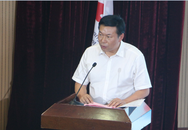 图为湖北省体育局副局长章进讲话 摄影:黄娟