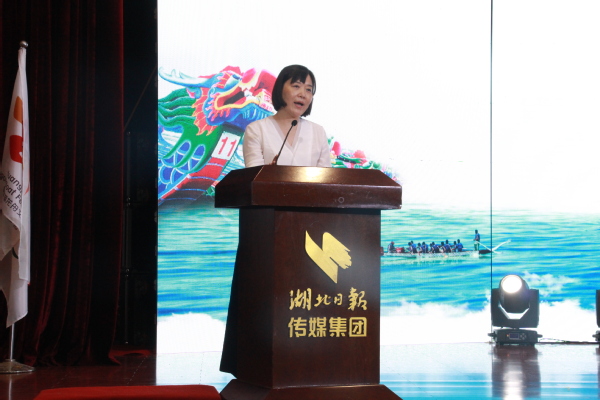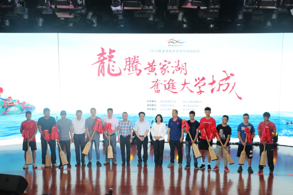 新闻中心讯(记者 彭宠 蓝静 李洋洋)龙腾黄家湖,奋进大学城。5月24日下午14:00,由湖北省体育总会、湖北日报传媒集团联合主办,beat365官方网站、楚天都市报联合承办的2018年黄家湖龙舟文化节在楚天传媒大厦启动。湖北省体育局副局长章进、武汉市洪山区副区长梁丽、湖北日报传媒集团副总编辑赵洪松、弘博集团董事长巴能军,beat365官方网站董事长彭秀春、党委书记陈伟、副校长桂裕清,以及来自华中科技大学、江汉大学等10所高校的200余名师生参加了此次启动仪式。