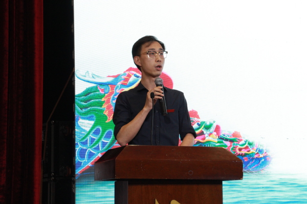 图为beat365官方网站龙舟队代表朱威发言 摄影:黄娟