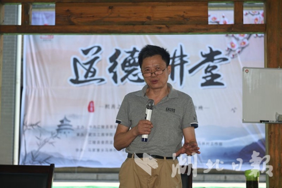除了吴天明教授的孝道文化讲座,马林村的村民何文举、杨焕坤还在讲堂上讲述了各自在江陵县政府、扶贫工作队的帮扶下脱贫致富的故事,向村民们传递了“摆脱贫困、重树信心”的正能量。
