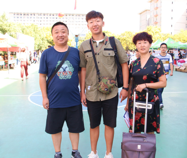 图为大一新生与家长开心合影 摄影:车瑭甜