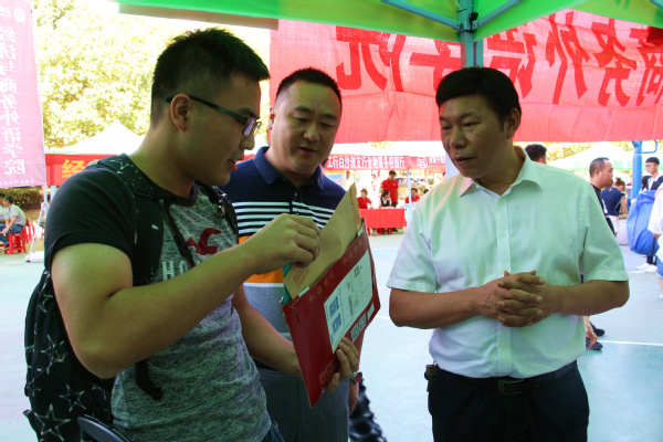 图为陈伟书记(右一)关心了解学生报到情况 摄影:唐明悦