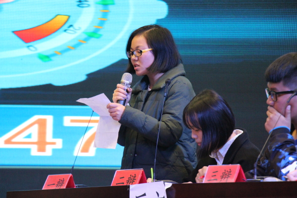 在随后的自由辩论环节中,双方辩手就辩题展开了更深层次的辩论,正方三辩张嘉文同学尤其出彩,屡爆金句,以幽默诙谐的语调赢得满堂喝彩,将比赛推向高潮。“何为幸福?幸福来源于精神享受而不是物质,文科生拥有着高情商,利于沟通,精神文化的熏陶远远优于理科生。”经过双方辩手激烈的提问和攻辩后,正方四辩总结到,反方四辩则认为“物质保证不仅保障了生活质量,还能更理性地去抵抗诱惑力。”