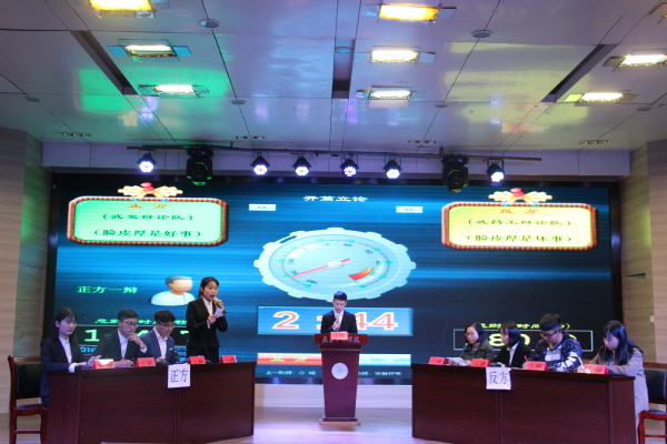 在另一场辩论赛中,由武汉交通职业学院对阵武昌工学院,他们就“脸皮厚是好事还是坏事”的话题展开辩论。正方武汉交通职业学院认为脸皮厚是好事,指出“脸皮厚在字典中解释为不容易害羞,古往今来有成就者都是有能力的人,他们不怕生活中的大小事情。”反方武昌工学院则坚持脸皮厚是坏事,认为“脸皮厚很容易伤害到他人,是对自己和他人的不负责。同时脸皮厚带有一定的目的性,自私且不顾及他人感受。”双方辩手针锋相对、气势如虹,场上火药味十足,自由辩论环节更是精彩连连,引得观众频频拍手称赞。