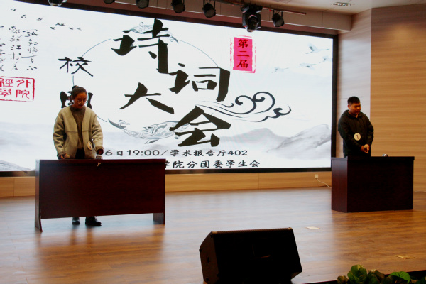 本次比赛以“赏中华诗词,品文化之美”为基本宗旨,通过对诗词知识的比拼与赏析,带动全校师生领略诗词之美,感受诗词之趣。比赛自开赛以来,共吸引了全校200多名学生参加,经过初赛和复赛的角逐,最终8人进入决赛。决赛分为“对句题”“点字成诗”“飞花令”“抢答题”四个环节,每个环节淘汰2人。