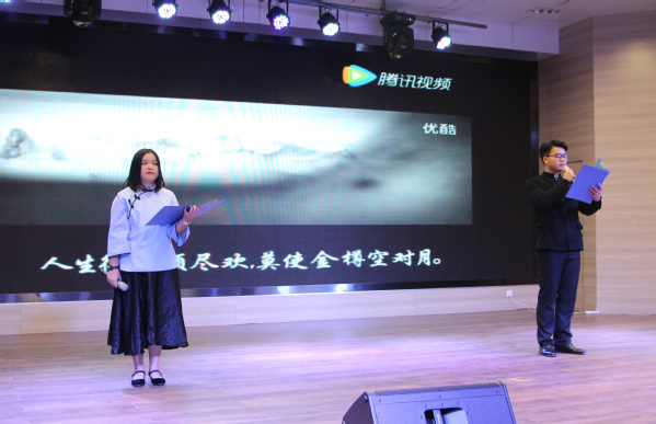 “君不见,黄河之水天上来,奔流到海不复回……”经济与商务外语学院分团委学生会成员的一首《将进酒》诗朗诵尽展诗人忧愁愤慨的内心世界,让人不禁感叹诗词的丰富内涵和神奇魅力。随后,比赛正式拉开帷幕。