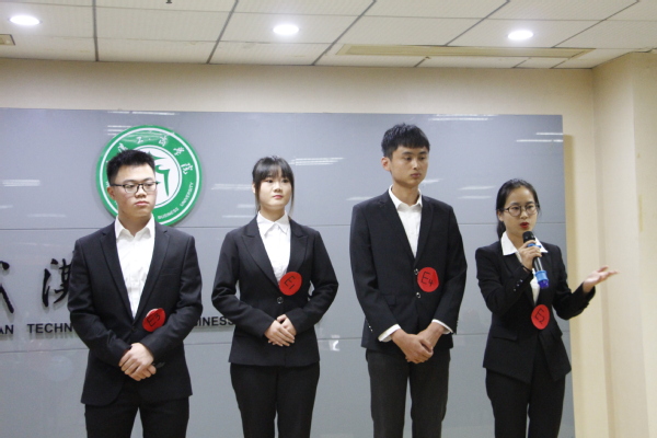 由管理学院学生杨晨曦、熊旺林,电子商务学院学生孙伴,应用技术学院学生张俊涛4人组成的“超越队”紧盯青年大学生的社交活动,对团队负责的“食烟火”约饭社交APP进行了介绍,其对市场营销助理岗位工作的精准模拟让大家眼前一亮;由应用技术学院学生杨阳、陈映伶、费蕊、李明艳4人组成的“不学无墅队”销售的相亲软件,以及由管理学院学生郑剑婷、李晓莹、袁先利、刘嘉慧4人组成的“骐骥队”销售的“一键报警”系统,都紧跟日常生活和社会热点,在与评委互动的推销模拟场景让人印象深刻。