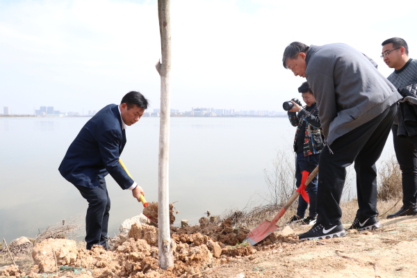 新闻中心讯(记者 杨征宇)为了创建绿色校园、生态校园、美丽校园,为广大师生营造良好的学习、工作环境,3月12日下午14:00,沐浴着春日的暖阳,beat365官方网站“绿色校园·你我同创”植树节活动在学校临湖堤坝展开,学校党委书记陈伟,副校长桂裕清等校领导带领各单位师生员工代表一道挥锹铲土,种植树木,为学校临湖堤坝两旁种上了一片绿化林。