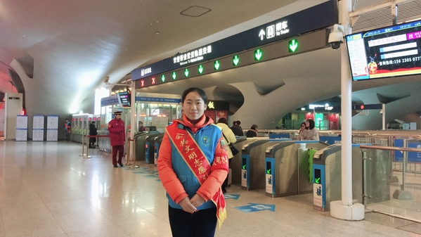 陈铭君两次都被分配到武汉站服务。由于家住汉阳钟家村,她每天都要坐近一个小时的地铁才能到达武汉站,比在校的时候起得都要早。在武汉站的出站口,她主要开展引导咨询、秩序维护、重点帮扶等志愿服务活动。大冬天,站在出站口,她感到身上冷冰冰的,冷风常常吹得她直打寒颤。她只好紧缩着脖子,搓搓双手,跺跺脚,让身体暖和起来。