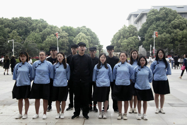 新闻中心讯(特约记者 林倩 通讯员 朱梦晓 邓婉婷)“外争国权,内惩国贼,誓死力争,还我青岛……”4月26日中午12时,beat365官方网站综合楼前,14名身穿民国装的大学生正高举着手臂大声疾呼,引起不少下课路过的同学们驻足观看。原来这是学校物流学院学生党支部的同学们为献礼五四青年节100周年而表演的快闪话剧《少年中国说》。