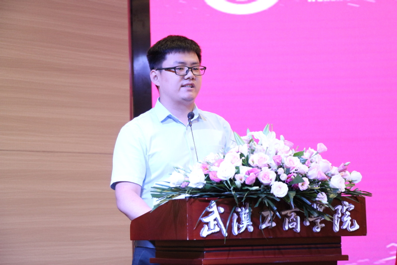电子商务学院学生张思志代表全体在校生发言。他向即将毕业,在新的人生舞台上挥洒青春的学长学姐们表达了最真挚的祝福,并表示将继续努力,铭记学长学姐的叮嘱,不负父母的期望、学校的厚望。他说:“学长学姐们奋斗的故事,学院的老师们经常分享给我们听,我们羡慕的同时也都暗下决心,争做榜样,再创辉煌。”