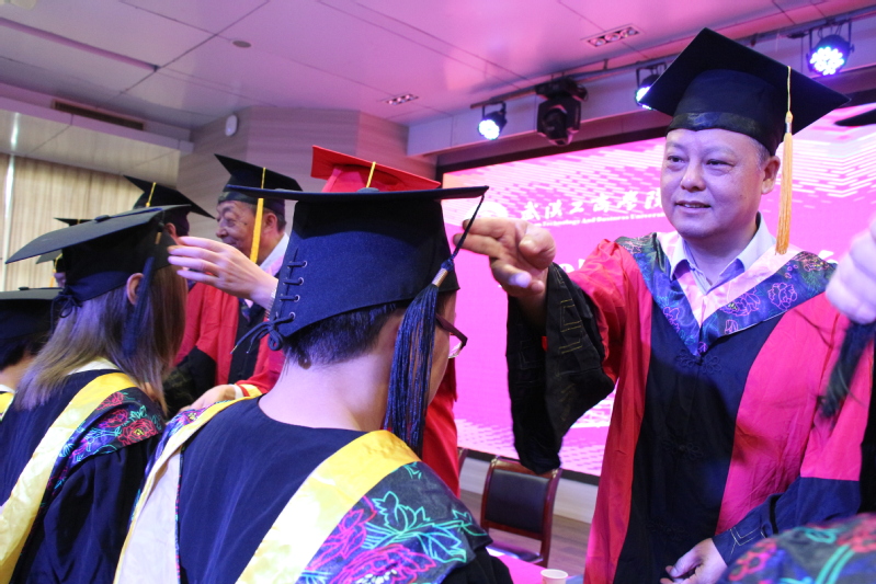 图为彭秀春为学生拨穗 摄影:冯哲昊