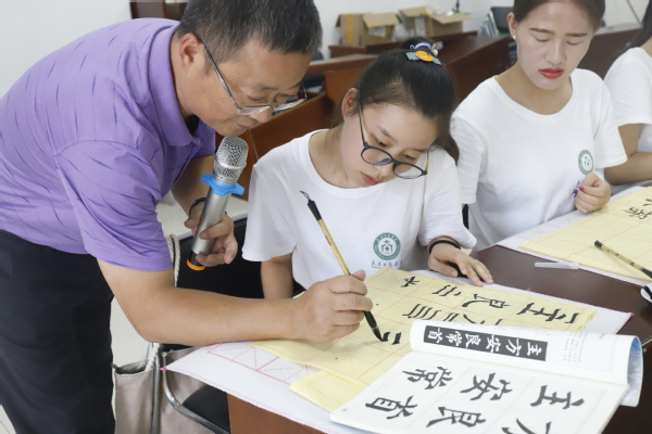 图为左宗文校助正在传授书法 摄影:宋林玲