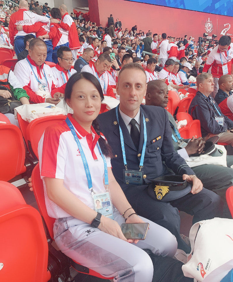 “本届军运会羽毛球赛事非常精彩、看点十足!”一说到自己的专业领域,她马上来了劲头,“比赛工作有条不紊,前期是男子团体小组赛,每天比赛分上午和晚上两节进行,男团五个队进行单循环比赛,裁判员分成10小组轮换上场工作。羽毛球男团比赛中,中国队以5:0先后战胜法国队、朝鲜队和泰国队,23日又在和韩国的对战中大获全胜,获得冠军——亲眼目睹五星红旗在赛场冉冉升起,让我倍感振奋与自豪。各国选手们也都非常专业,认真对待每一分,尊重每一位对手。”