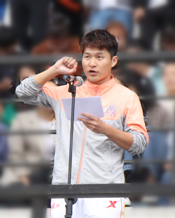 学生冯发奕作为运动员代表宣誓,表示一定要以精湛的体育运动技能和良好的体育道德精神,展现工商学子奋发昂扬的精神风貌。老师张林成代表裁判员宣誓,表示一定要恪守本职,客观公正,严格执行比赛规程和规则。