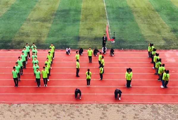 图为环生学院方阵摆出NO.1造型 摄影:李洋洋