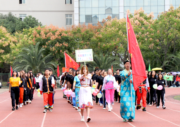 伴随着激昂澎湃的《运动员进行曲》,运动会入场式正式开始。在国旗护卫队的引领下,来自各学院的学生以及教职工代表队依次入场,大家迈着铿锵有力、矫健整齐的步伐,精神抖擞、昂首挺胸地从主席台前走过,接受学校领导的检阅,并通过各具特色的入场队列表演展现出师生的风采。