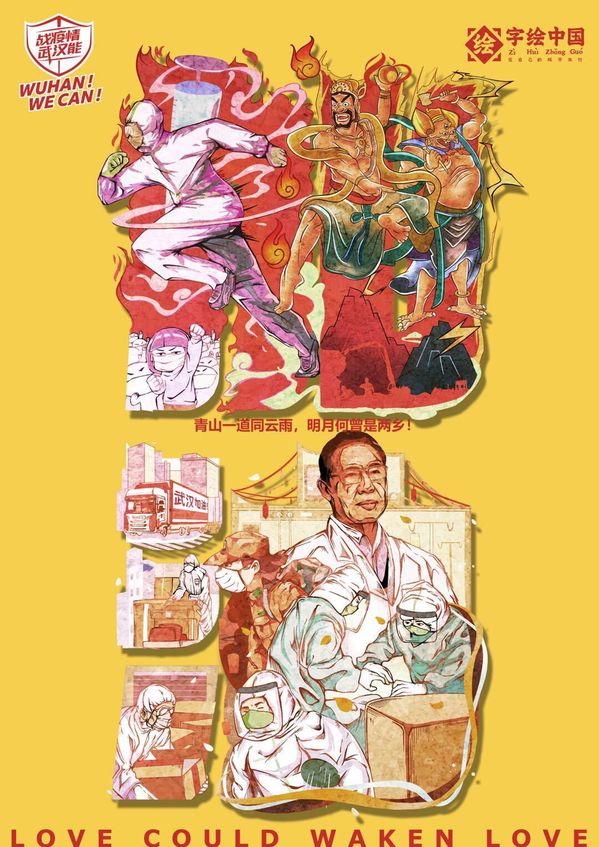 图为悬挂在武昌黄鹤方舱医院内的作品