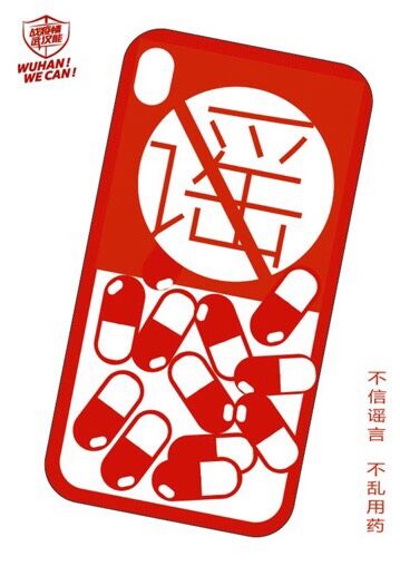 学生海报作品《不信谣言 不乱用药》作者彭怡珂谈起自己创作感受时说,虽然自己是陕西人,但是在武汉学习的半年时间里,早已深深的爱上了武汉这座城市,自己也时刻关注着武汉疫情的发展。“作为艺术与科技专业的学生,我将手机壳、药丸等元素,结合文字,通过自己的创意与设计,向大家传达出“不信谣言,不乱用药”的理念,同时也表达出我们心系武汉和为武汉加油的一点小小心意。”