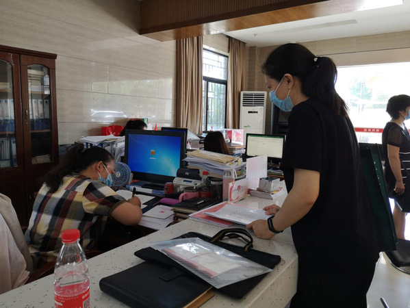 图为王曼副部长办理党委工作队下沉黄家湖社区正式报到