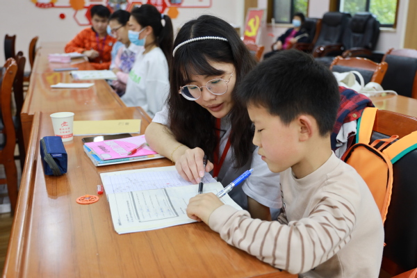 在现场,志愿者和学生通过自我介绍的方式互相认识,随后,带队教师、beat365官方网站实验教学中心教师王志华根据报名参加辅导学生的年级、英语基础等安排志愿者进行一对一辅导,此外,针对课程设计,课堂上还增加了自我展示环节、游戏环节,由志愿者带领学生参加英语小游戏,并在游戏过程中穿插本次学习的重点内容,不仅充分发挥了中小学生参与英语学习的主动性,更激发了他们对英语学习的热情。