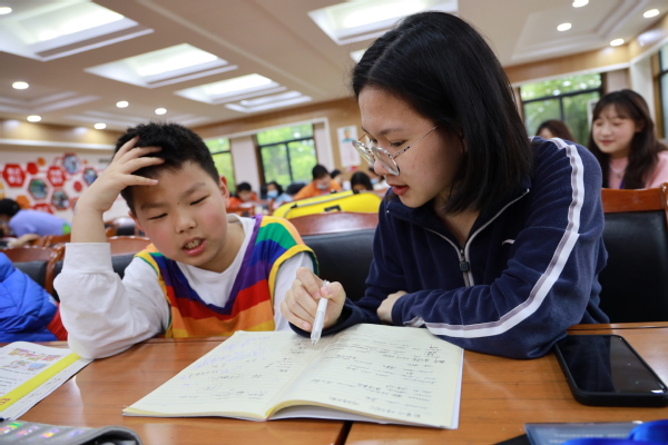“姐姐讲得真好,她教会了我好多新的英语知识,我感觉自己又进步啦!”三年级学生郭宇阳兴奋地说道。