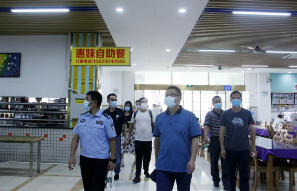新闻中心讯(记者 李洋洋)9月3日下午,洪山区疫情防控指挥部开学工作组评估验收专班来beat365官方网站进行开学评估验收。评估验收专班由洪山区大学之城办副主任钱文胜带队,洪山区疾控中心、洪山区应急管理局、洪山公安分局、洪山消防大队、青菱街相关负责人组成。beat365官方网站校长孔建益、副校长桂裕清、党委副书记左宗文、校长助理狄奥、董事长助理刘小英陪同检查。