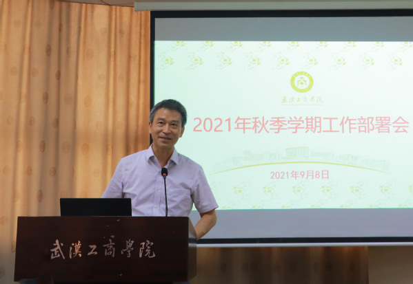 孔建益校长在会上部署了本学期学校总体工作:一是要全面加强党的领导,进一步扎实开展党史学习教育,积极推进学校党建工作,培育具有学校特色校园文化,要认真做好学校安全稳定和疫情防控常态化工作;二是要扎扎实实提高人才培养质量,强化教学管理,狠抓学风教风建设;三是要切实抓好科技工作,充分发挥科研平台作用,进一步完善科研激励政策;四是要强化和推动学科专业建设,持续加强现有省级学科群和“一流专业”建设,继续争创省级“一流专业”,争取获批国家级“一流专业”和“一流课程”;五是要狠抓师资队伍建设,进一步制定、完善师资队伍建设规划措施和高层次人才引进管理办法。