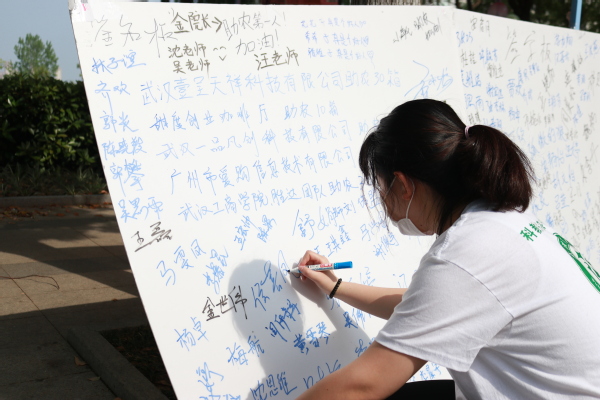 图为同学在祝福板上签名 摄影:张焰