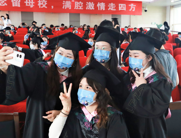 图为毕业生在典礼结束后合影留念 摄影:张誉东