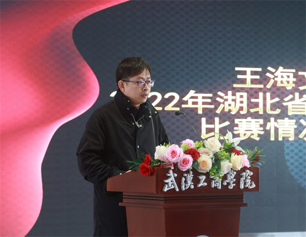 金学武主任介绍了2022年第八届“互联网+”大学生创新创业大赛比赛情况以及下一届大赛备赛思路,并宣读2022年获奖结果及表彰决定。王海文院长介绍并宣读了2022年湖北省文化创意作品大赛比赛情况及获奖结果。
