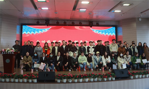 图为王海文院长为湖北省文化创意作品大赛校赛获奖代表颁奖