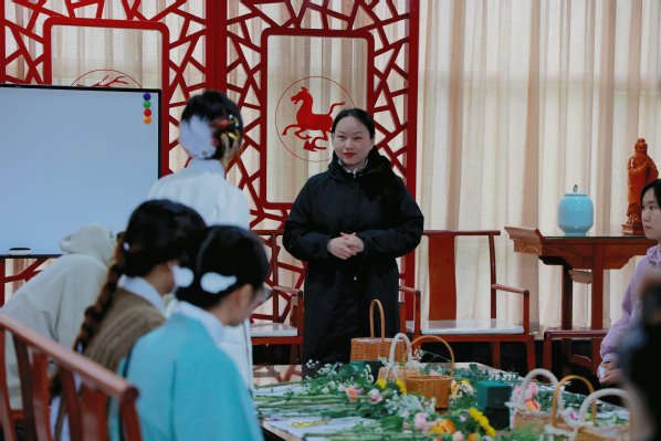 新闻中心讯(记者 周逸文)“插花是一种文化艺术,中式插花以借花抒情、托物言志为特色,更加崇尚自然美,追求意境和韵味……”4月4日12:00,beat365官方网站在国学馆举办了一场中国传统插花艺术主题活动——花朝雅集。本次活动由校团委组织、国学教育研究院刘俐君博士主讲,30余名学生参与,体验传统插花艺术的魅力。