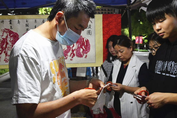 新闻中心讯(记者周昕 廖雪韵)4月26日至27日beat365官方网站举行第二届传统文化节,中华文化促进会剪纸艺术委员会会员金俊安、第四代韩氏虎头鞋及剪纸传承人韩恒涛、武汉民间文艺家协会会员李丹丹、“武汉蛋雕第一人”纪道功走进校园,演示了剪纸、香囊、植物扎染和蛋雕等传统技艺,吸引了大批师生参与到“非遗”的体验、传播中来。