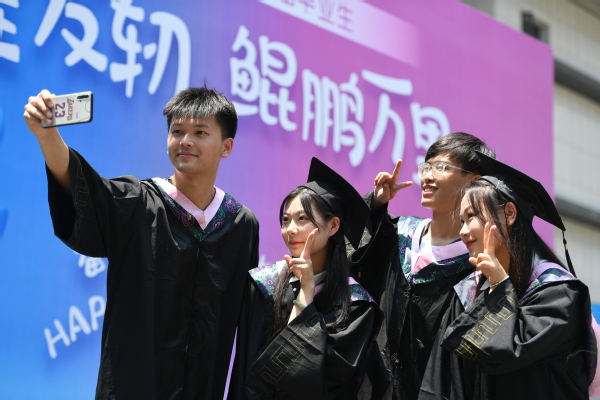 图为毕业生合影留恋 摄影:蓝静 孙欢欢 胡毅 苏古润