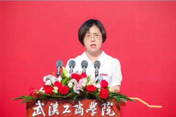 艺术与设计学院2023届毕业生李文豪的父亲李保龙作为家长代表发言。他感慨地说,“孩子大学四年逐渐褪去稚气变得成熟稳重,成为一名光荣的中共党员,同时顺利考取目标院校研究生,这一切离不开学校和老师孜孜不倦的教诲。希望同学们带着对母校的殷切期盼,弘扬‘武工商精神’,努力成长为对国家、社会有贡献的栋梁之才。”