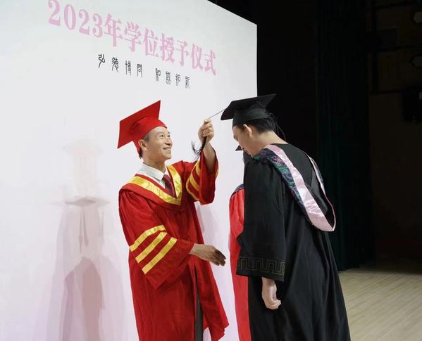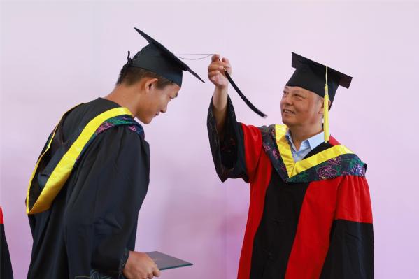 图为刘生元书记为学生拨穗 摄影:郝芮